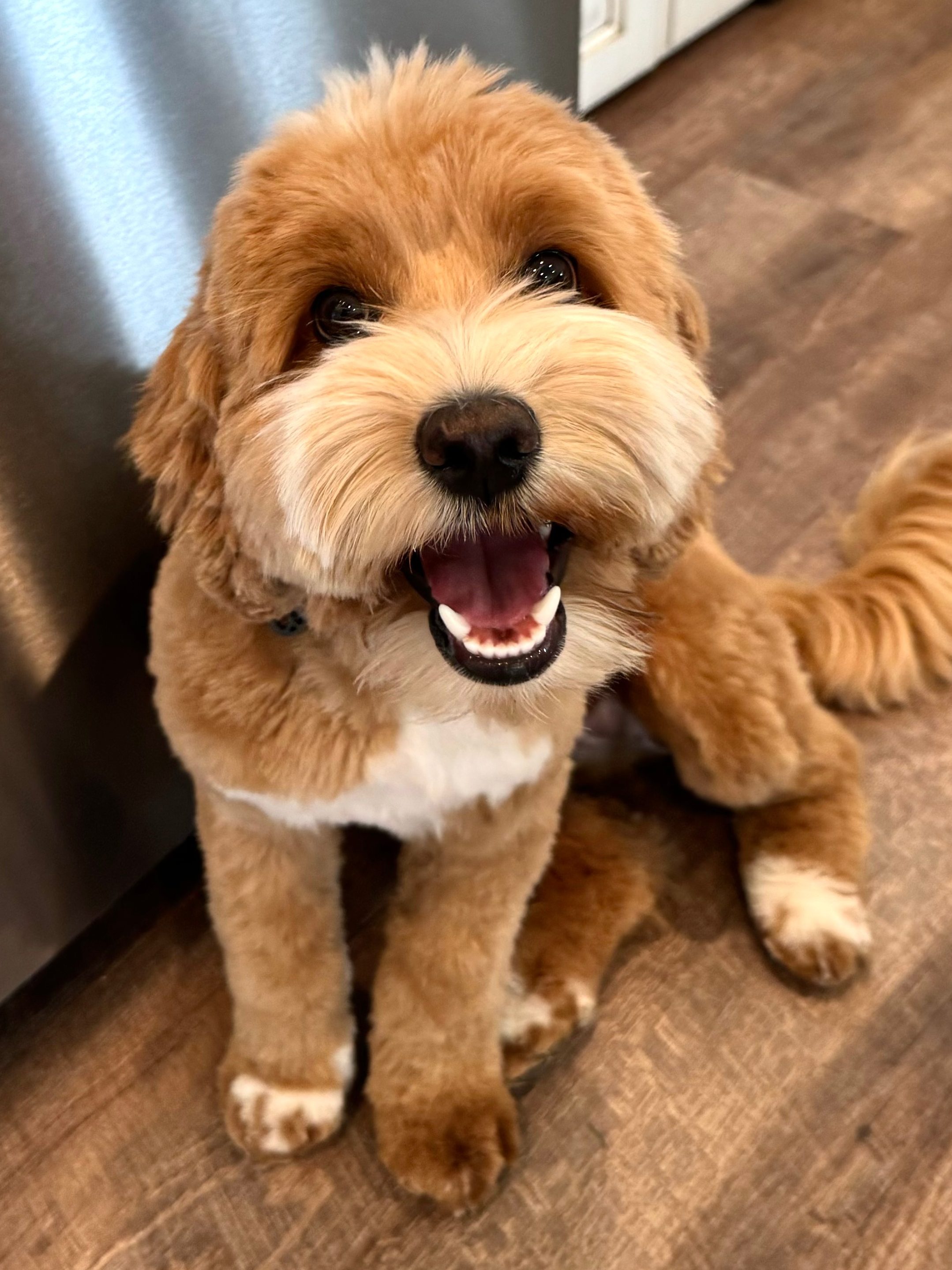 Maggie is the sweetheart of the house. She is smart, obedient and wants only to please. Her VERY soft, wavy fleece coat makes her the perfect snuggle buddy. We sure love her!